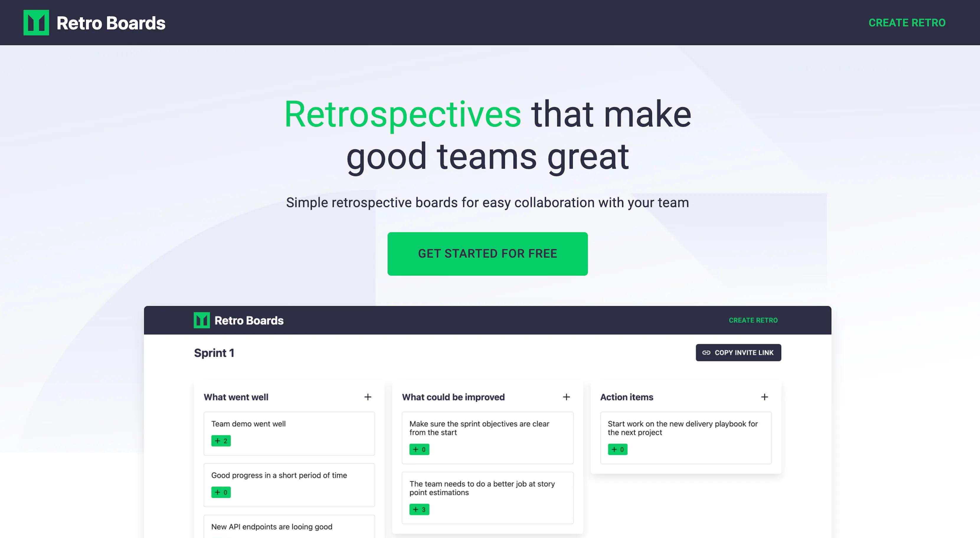Simple retrospective board tool for easy collaboration with your team. It allows teams to work together in real time to improve their work process.